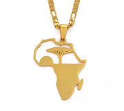 Necklace Chain - Africa Map Tree Of Life Necklaces - 18K Gold Plated Africa Pendant - Tree Necklace - Africa shaped necklace Men and Women