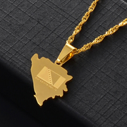 Bosnia is a country that possesses very deep and unassuming human warmth, its beautiful mountains, numerous medieval castle ruins, raftable rivers and impressive waterfalls are breathtaking.To commemorate this gorgeous place, introducing this beautiful Bosnia map necklace.