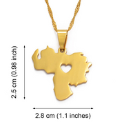 The culture of Venezuela is a melting pot made up of three main groups: The Indigenous Venezuelans, the Africans, and the Spanish. Venezuela possesses lots of natural beauty: Andean peaks, Caribbean coastline, idyllic islands, grasslands teeming with wildlife, the steamy Orinoco Delta and the world's highest waterfall, Angel Falls.To commemorate this beautiful country, introducing this gorgeous Venezuela map necklace.