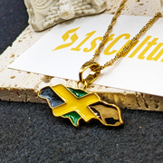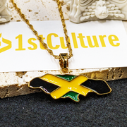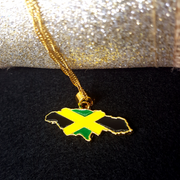 18k Gold Plated Jamaica Map Necklace Full Color - Jamaica Necklace - Jamaica Gold Necklace - Jamaica Flag Necklace - Jamaica Gift